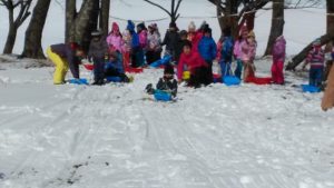 さくら組のそり遊び。雪もたくさん積もっていて子ども達は大喜び。
