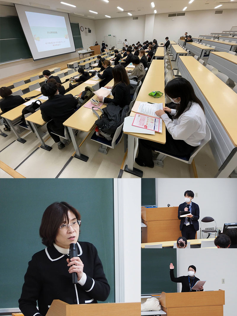 1月9日(金)4コマ目、健康栄養学専攻3年対象「健康栄養学総合演習Ⅱ」の授業において、宮城県対がん協会から講師をお招きして、「がん教育講座」を実施しました。講師は、大崎市のちか子女性クリニックの岡村智佳子院長。