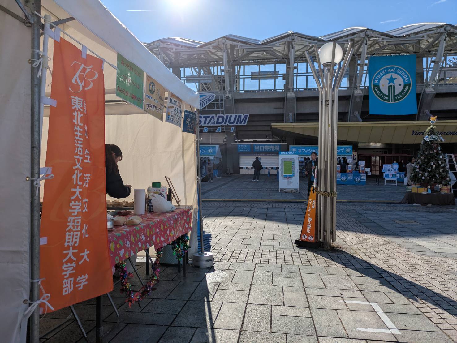 スポーツ栄養サークルの個性的な活動の一つとして、手焼きワッフルの販売・提供があります。これまでにもベガルタ仙台公式戦や、ホームタウンフェスタ、泉ヶ岳トレイルラン、大学祭、泉区民文化祭などでの販売・提供実績があります。当初は泉区産の豆乳やリンゴジュースを加えたアスリートワッフルでしたが、始めて7年目ともなるとアスリート関係のない生クリームワッフルなどもメニューに加わっており、いつかはTSBワッフルとして大学の名物になればと思っております。