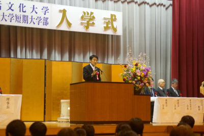 大学短大の新入生と編入生が一堂に会し、これからの学生生活に向けて新たな一歩を踏み出しました。