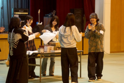 学科専攻紹介、ファッションショー、ゲーム、抽選会、サークル紹介、フォークロックライブなどで、学生の活動を知りながら交流を深める場となりました。