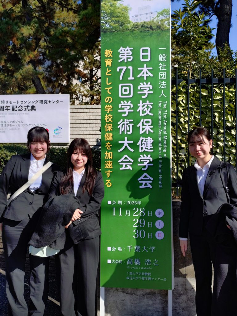 令和7年11月29日(土)~30日(日)に千葉大学で行われた日本学校保健学会第71回学術大会に参加してきました。600名を超える学校保健の先生方と一緒にたくさんの事を学んできました。また、ポスター発表では、緊張しながらも、多くの先生方に質問を頂き、一つ一つ丁寧に答えることができました。とても学びの多い2日間となりました。