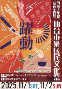 2025.11/1(土)、11/2(日)に開催された令和7年度仙台市泉区民文化祭のパンフレットイラストを本学2年生の木津谷優里がデザインしました。