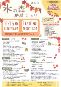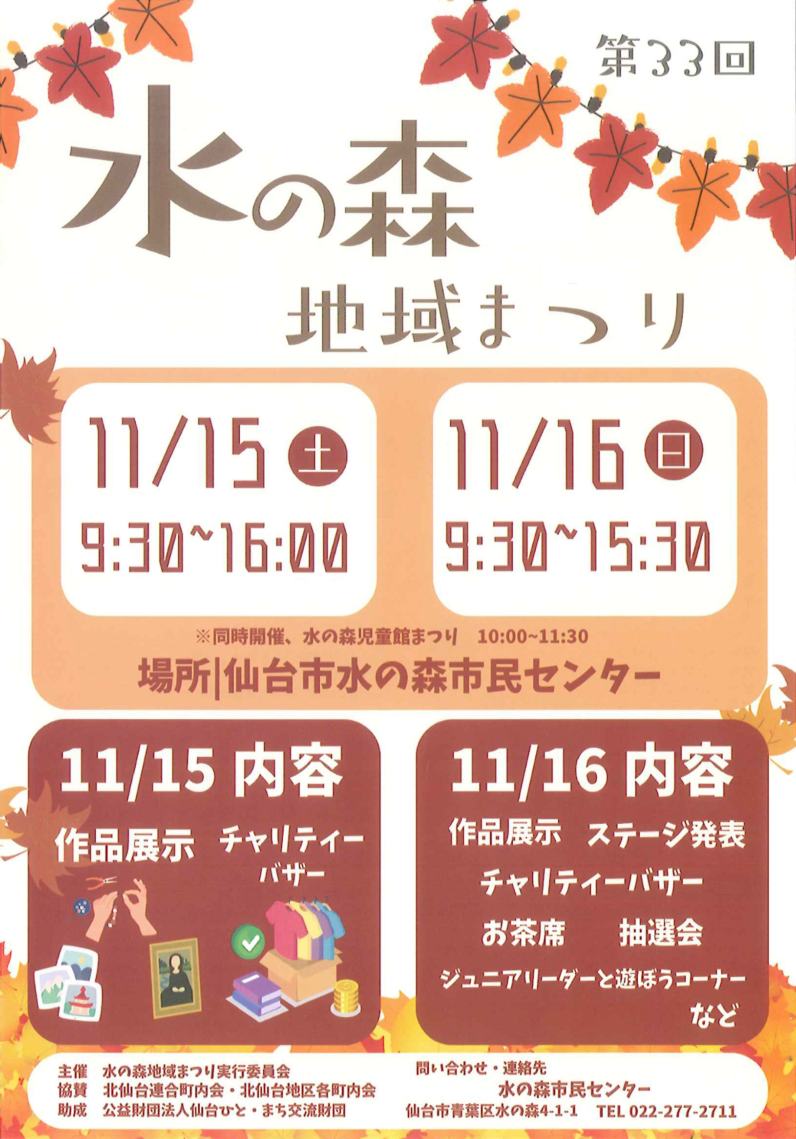 11月15日・16日に、水の森市民センターにて第33回水の森地域まつりが開催されます。
